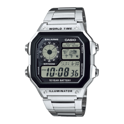 El Casio AE-1200WHD-1A es la versión más refinada del Casio Royale. Su pulsera metálica le da un aire profesional, sin renunciar a su ADN digital, aventurero y resistente.