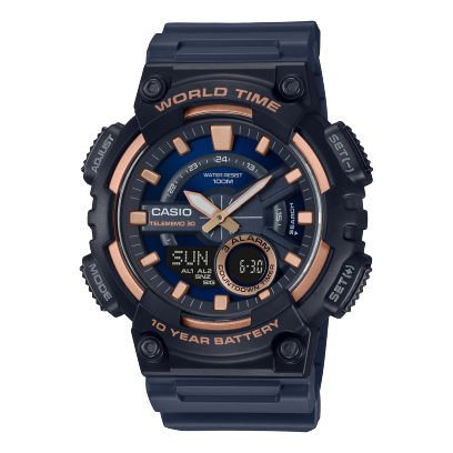 | Nombre del producto | Casio AEQ-110W-2A3V – Ana-Digi Azul Marino con Detalles Verde Neón |