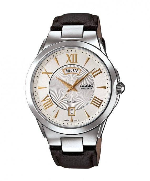 El CASIO BEM-130L-7AV es la síntesis perfecta entre la herencia relojera y el prestigio moderno. Con su impecable esfera blanca resaltada por índices romanos en un brillante tono dorado amarillo, este modelo de la serie Beside destaca por su sofisticado indicador de día retrógrado, una joya de la micro-mecánica que redefine la lectura del tiempo. Complementado con una correa de cuero genuino marrón y una caja de acero pulido, es el accesorio definitivo para el profesional que busca proyectar una imagen de liderazgo, distinción y precisión absoluta.