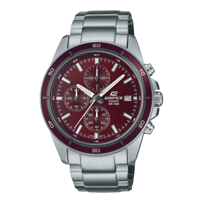 El Casio Edifice EFR-526D-5CV combina una esfera burdeos metálico con un diseño clásico y elegante. Es un cronógrafo moderno y distintivo, perfecto para uso ejecutivo con estilo refinado.