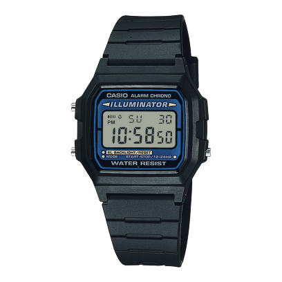 El CASIO F-105W-1ADF, un clásico digital con un estilo retro atemporal. Fiable, ligero y resistente al agua 30m, ofrece funciones esenciales: cronómetro, alarma y calendario. Su iluminación EL azul-verde asegura visibilidad en cualquier condición. ¡Perfecto para tu día a día!