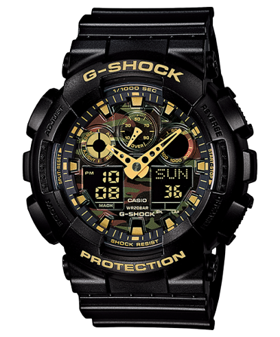 El GA-100CF-1A9 es una declaración de dominio visual. Su dial en camuflaje dorado combina la estética militar con un toque de sofisticación contundente. El negro profundo del cuerpo contrasta con los detalles metálicos dorados, proyectando autoridad, potencia y una presencia imponente. Es la pieza ideal para quienes desean un reloj táctico con alma de lujo.
