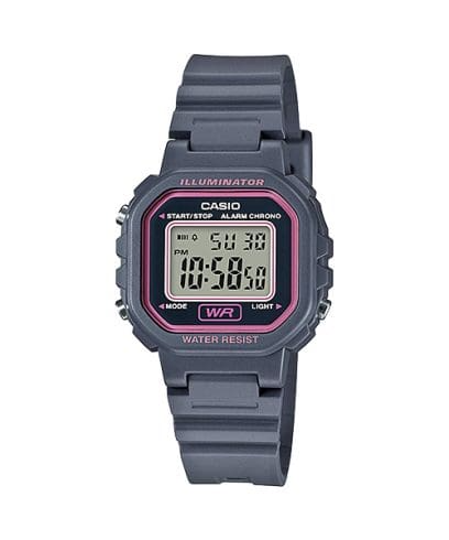 El Casio LA-20WH-8A combina sobriedad y un toque suave de color. El gris mantiene el reloj discreto y fácil de combinar; el bisel rosado aporta personalidad sin romper la funcionalidad. Ligero, confiable y pensado para el uso diario real.