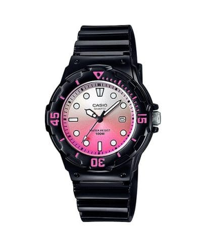 El Casio LRW-200H-4E combina carácter y frescura en una sola pieza. El contraste entre la caja negra y la esfera rosa crea un look moderno y dinámico, sin perder la robustez ni la ligereza que definen a la serie LRW. Resistente al agua, cómodo y muy legible, es ideal para el uso diario con un toque de actitud y color.