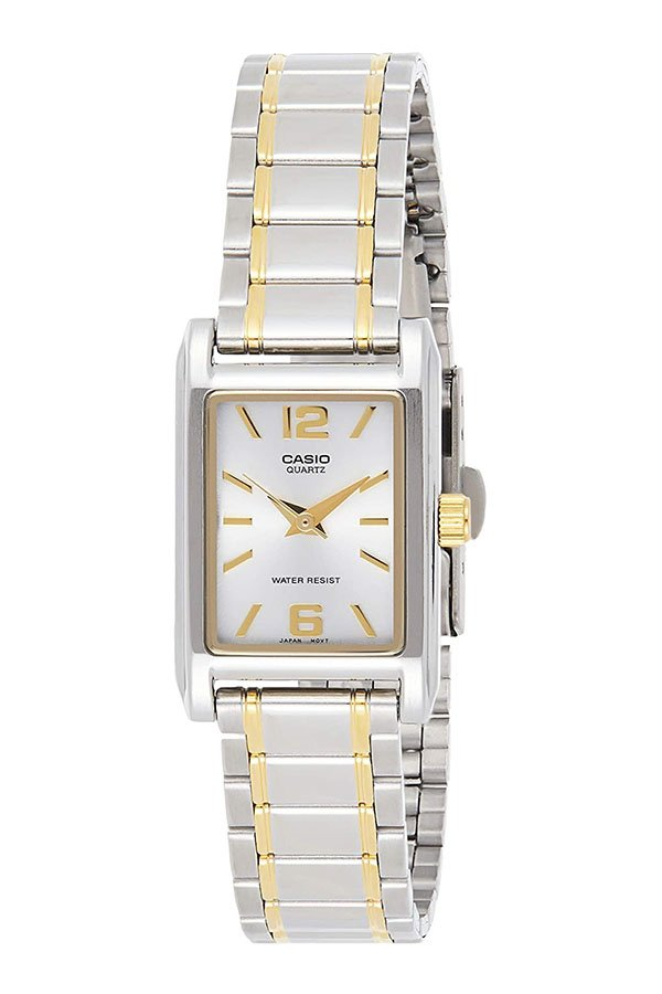 El Casio LTP-1235SG-7A es un reloj femenino que combina sobriedad clásica con un toque de lujo suave.