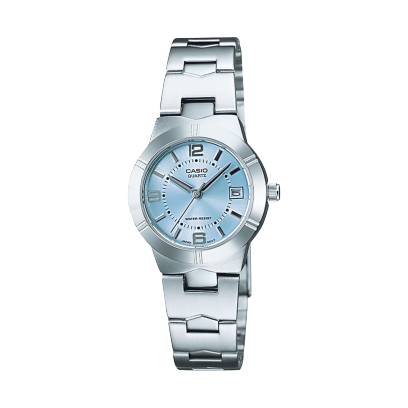 El Casio LTP-1241D-2A irradia frescura ejecutiva. Su esfera azul celeste —luminosa, ligera y delicadamente metálica— se funde con un brazalete estilizado de eslabones geométricos que rompen la monotonía del acero tradicional. Es un reloj perfecto para mujeres que buscan elegancia minimalista con un guiño moderno, ideal para oficina, formal casual y eventos donde la sobriedad necesita un toque de color.