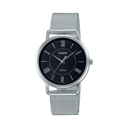 El Casio LTP-B110M-1A combina una esfera negra elegante con números romanos y una malla milanesa plateada para un look refinado y moderno. Es un reloj femenino con carácter sobrio y premium, ideal para oficina, eventos formales o un estilo chic minimalista.