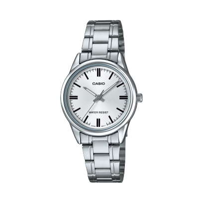 El Casio LTP-V005D-7A destaca por su equilibrio entre claridad y elegancia. Su esfera blanca contrasta con el brillo del acero, ofreciendo una estética limpia, profesional y atemporal. Ideal para acompañar atuendos ejecutivos, formales o minimalistas.