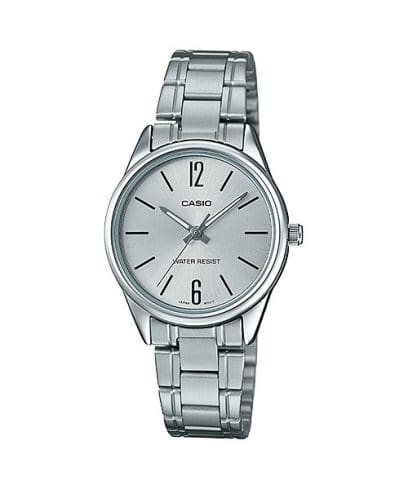 El Casio LTP-V005D-7B destaca por su estética limpia y moderna: una esfera plateada minimalista combinada con un brazalete de acero elegante. Es un reloj ideal para mujeres que buscan una pieza clásica, versátil y fácil de combinar tanto para trabajo como para uso diario.