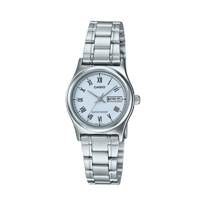 El Casio LTP-V006D-2BUD combina el brillo del acero con la serenidad de una esfera azul claro, evocando equilibrio y elegancia moderna. Un reloj práctico y refinado, ideal para mujeres que buscan un accesorio sobrio con un toque distintivo de color.