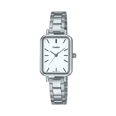 El Casio LTP-V009D-7E es un reloj femenino que exhala elegancia sencilla. Su caja rectangular estilizada, su esfera blanca limpia y su brazalete de acero fino crean un look moderno y atemporal. Es la elección ideal para quienes buscan un reloj discreto, ligero y refinado, perfecto para oficina, joyería minimalista o estilo dress casual.
