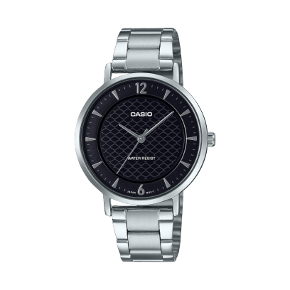 El Casio LTP-VT04D-1A combina una sobria esfera negra texturizada con el brillo del acero, logrando un estilo minimalista sofisticado. Es un reloj ideal para mujeres que buscan una pieza moderna, versátil y elegante, capaz de acompañar tanto looks profesionales como atuendos nocturnos.