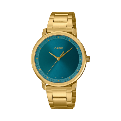 El LTP-B115G-3E deslumbra con su tono dorado cálido y una esfera verde esmeralda que aporta frescura y personalidad. Es un reloj que equilibra lo clásico y lo contemporáneo, ideal para mujeres que quieren destacar con elegancia natural y un toque de color refinado.