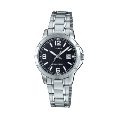 El Casio LTP-V004D-1B2 combina la sobriedad del negro con la calidez del plateado, logrando un diseño sofisticado y equilibrado. Es un reloj femenino ideal para quienes buscan elegancia discreta con un toque de lujo sutil, perfecto para uso diario o eventos formales.