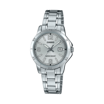 El Casio LTP-V004D-7B2 combina la sobriedad del acero, logrando un equilibrio perfecto entre elegancia y modernidad. Su diseño limpio y femenino lo convierte en el compañero ideal para atuendos de oficina o eventos casuales con estilo refinado.