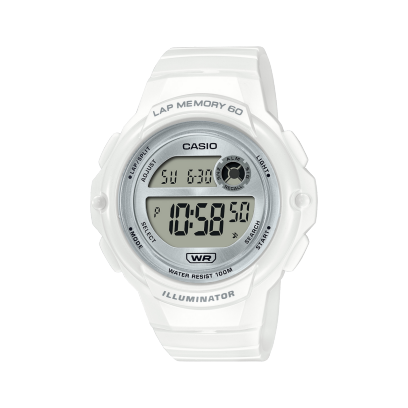 El LWS-1200H-7A1V es la definición de un reloj deportivo elegante: combina la pureza del blanco con la sobriedad del gris para un look limpio y contemporáneo. Ideal para mujeres activas que buscan practicidad sin renunciar al estilo, resistente al agua y equipado con funciones esenciales para el ritmo diario.
