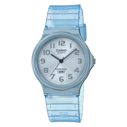 El Casio MQ-24S-2B es una pieza que celebra la transparencia y el color. Su acabado en resina azul translúcida evoca una sensación de ligereza y frescura, mientras que su esfera plateada satinada proporciona una base metálica que hace resaltar sus numerales arábigos. Es el accesorio ideal para quienes buscan un diseño joven y vanguardista que mantenga la simplicidad icónica de la serie MQ.