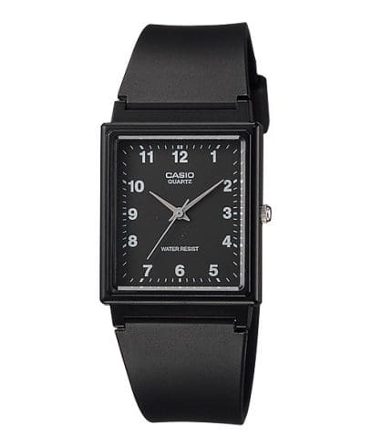 El Casio MQ-27-1B es la evolución arquitectónica del reloj analógico básico. Su formato rectangular proporciona una presencia distinta en la muñeca, ideal para quienes buscan un lenguaje visual más estructurado. La combinación de una esfera negra profunda con numerales blancos garantiza una legibilidad impecable, mientras que su construcción ultra ligera en resina asegura que el estilo no comprometa la funcionalidad diaria.