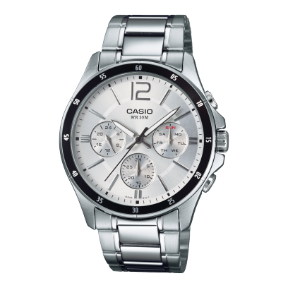 El Casio MTP-1374D-7A destaca por su estética equilibrada y sobria. La esfera plateada ofrece máxima legibilidad y una presencia limpia, ideal para acompañar tanto atuendos formales como business casual. Es un reloj confiable, serio y adaptable, pensado para quienes prefieren acertar siempre.