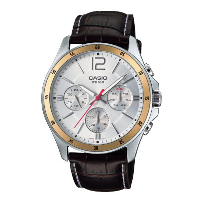 El Casio MTP-1374L-7AV equilibra sobriedad y carácter con una ejecución limpia y profesional. Su esfera plateada aporta claridad y versatilidad, mientras el bisel en tono dorado introduce un toque de distinción sin exagerar. La correa de cuero marrón completa una pieza pensada para el entorno corporativo, donde la funcionalidad debe verse tan bien como operar.
