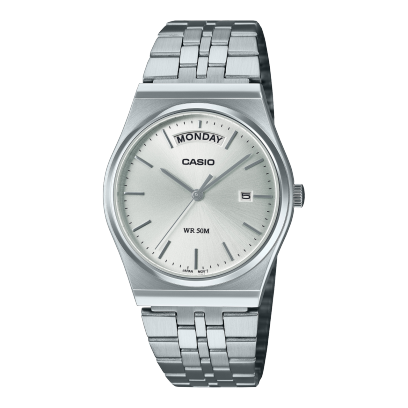 El Casio MTP-B146D-7A es una pieza clásica que apuesta por la elegancia minimalista: esfera plateada radiante, marcadores limpios y un brazalete de acero con vibra retro ejecutiva. Su indicador de día en arco aporta personalidad sin perder sobriedad, convirtiéndolo en un compañero ideal para oficina, eventos formales y look diario refinado.