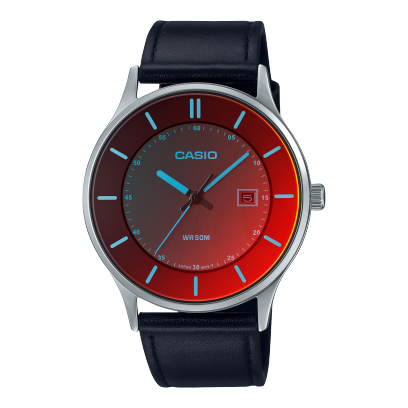 El Casio MTP-E605L-1E es un statement visual: su esfera degradada en tonos rojo intenso y negro genera un efecto vibrante que captura miradas al instante. Los índices celestes añaden contraste futurista, creando una pieza urbana, ligera y estilizada. Perfecto para el hombre que quiere un reloj distinto, moderno y con identidad visual fuerte.