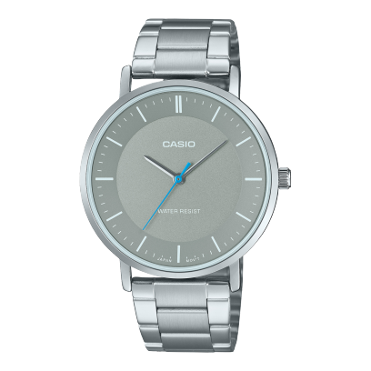 El Casio MTP-VT04D-8E redefine el minimalismo japonés con una presencia ejecutiva sobria y moderna. Su esfera gris mate, combinada con un segundero azul que rompe la neutralidad con un toque sofisticado, lo convierten en un reloj limpio, versátil y elegante para oficina, reuniones y uso diario.
