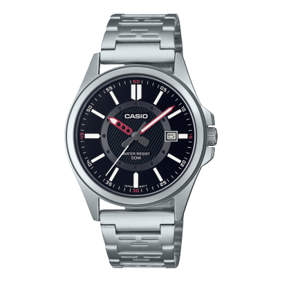 El Casio MTPE700D-1E es un reloj de acero inoxidable con dial negro y diseño sobrio. Combina elegancia clásica con resistencia al agua y fechador, ideal como reloj de diario para quienes buscan sencillez confiable y un look versátil.