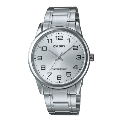 El Casio MTP-V001D-7BU es un reloj clásico con esfera blanca, numerales negros que añaden frescura al diseño. Su brazalete metálico plateado lo hace versátil para uso diario o en ocasiones formales, equilibrando sencillez y elegancia.