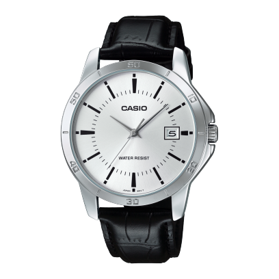 El Casio MTP-V004L-7A transmite sobriedad y elegancia con su esfera blanca y correa de cuero negro. Un reloj con calendario completo que se adapta tanto a la oficina como a ocasiones formales, siendo una pieza básica y atemporal dentro de la colección clásica.