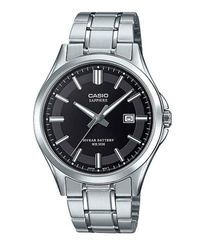El Casio MTS-100D-1A combina la resistencia del acero inoxidable con la sobriedad de una esfera negra minimalista. Su cristal de zafiro lo convierte en un reloj duradero y refinado, ideal para quienes buscan un reloj elegante, funcional y resistente para toda ocasión.