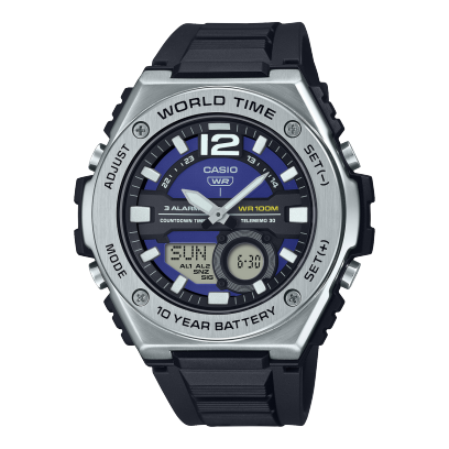 El Casio MWQ-100-2AV combina un diseño militar en azul marino con resistencia al agua de 100 m. Con ventana de fecha y luz incandescente lateral, es un reloj funcional y ligero para uso diario y actividades outdoor.
