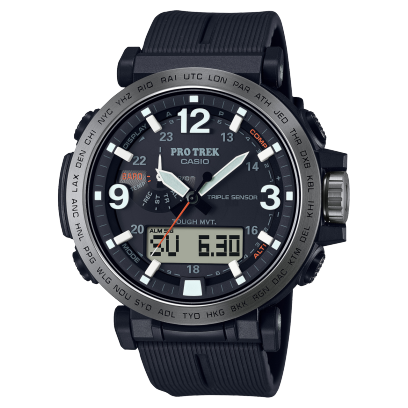 El Casio Pro Trek PRW-6611Y-1A es un reloj outdoor robusto en negro, con triple sensor (brújula, altímetro/barómetro y termómetro), energía solar Tough Solar y sincronización horaria Multiband 6. Resistente, preciso y diseñado para la aventura.