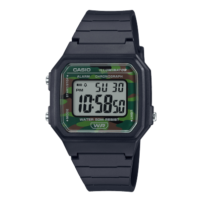 El Casio W217H-3B combina un diseño retro con acabado verde militar y pantalla positiva. Ligero, resistente y perfecto para uso diario o actividades outdoor ligeras.