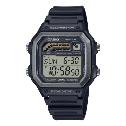 El Casio WS-1600H-1AV es un reloj digital robusto con pantalla extra grande, ideal para deportistas o personas que necesitan una lectura rápida y clara. Incluye memoria de vueltas, temporizador, hora mundial y resistencia al agua de 100 m, todo con una autonomía de 10 años.