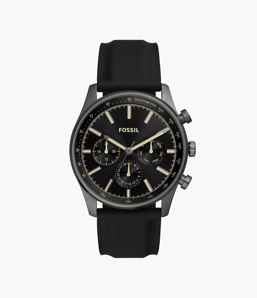 El Fossil BQ2746 equilibra diseño deportivo y estética refinada. Su caja negra mate, esfera con detalles dorados y correa de silicona crean una combinación audaz y sofisticada. Ideal para quienes buscan un reloj versátil con carácter contemporáneo.