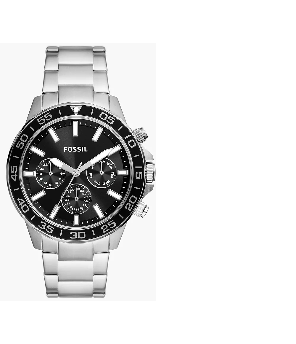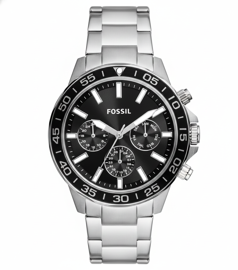 El Fossil BQ2753H combina precisión y estilo con un diseño audaz en acero inoxidable. Su esfera negra con detalles plateados refleja una estética moderna y confiable, perfecta para hombres que buscan un reloj funcional y con presencia.