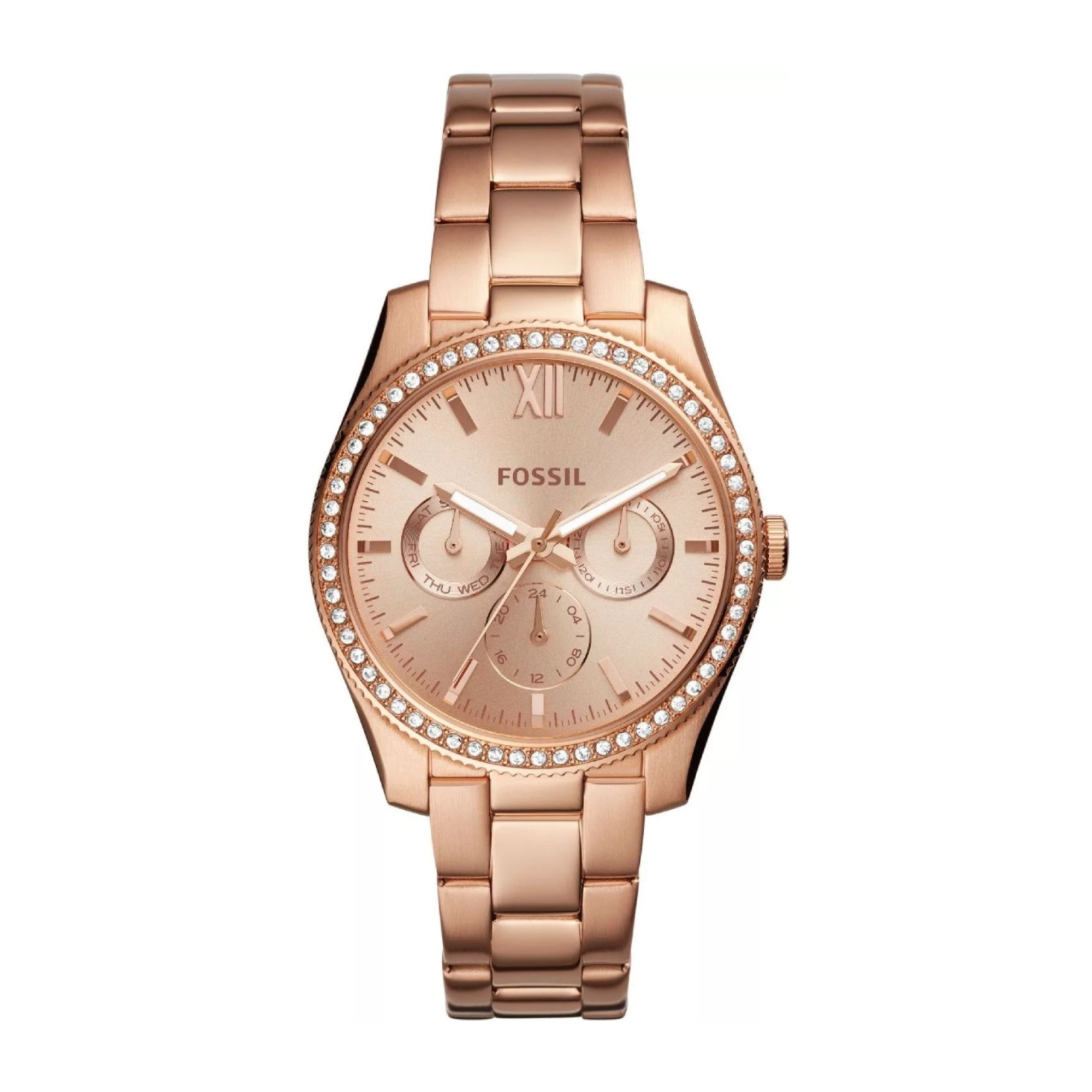 El Fossil ES4315 combina el brillo del oro rosado con un toque moderno y sofisticado. Su bisel decorado con cristales y su diseño multifunción hacen de este reloj una pieza tan práctica como glamorosa. Perfecto para mujeres con estilo que buscan destacar con elegancia sutil.