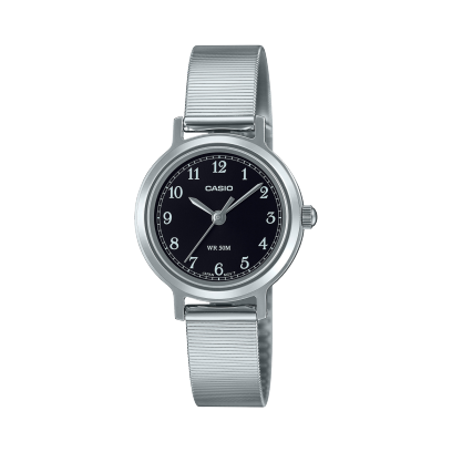 El Casio LTP-B170D-1B ofrece una combinación impecable de sobriedad y estilo: esfera negra elegante, malla plateada fina y un diseño minimalista que destaca por su refinamiento. Es el reloj perfecto para mujeres que buscan una pieza moderna, versátil y sofisticada con resistencia al agua real.