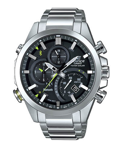 El Casio Edifice EQB-501D-1A es un cronógrafo premium con energía solar y Bluetooth, con esfera negra y acentos verde lima. Une tecnología avanzada con un diseño deportivo-ejecutivo ideal para uso profesional moderno.